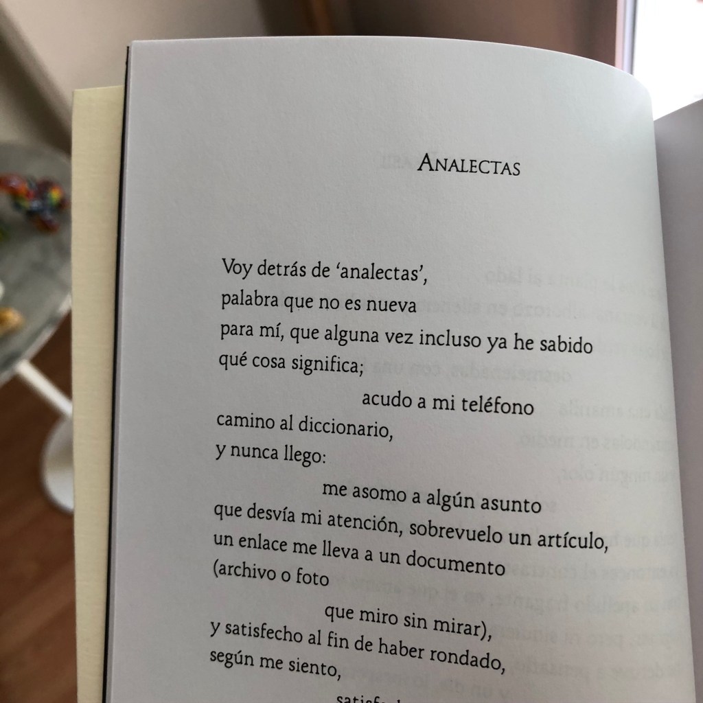 Con algunas palabras me ocurre un extraño fenómeno, para el que no tengo explicación: no puedo fijar tan fácilmente en la memoria su significado (“inexhaurible”, “glauco”, “nugatorio”), así que voy por segunda o tercera ocasión en su búsqueda. La última vez que di con la extraña palabra “analectas”, leyendo quién sabe qué cosa, acudí a la aplicación de la Real Academia, a la pantalla de mi teléfono. No llegué nunca. Volví unos minutos después a la página del libro en donde me había reencontrado con ella, con las manos vergonzosamente vacías. “Analectas”, fija en su sitio, me miró con ojos burlones y risueños, recargada de su antiguo misterio, más hermosa y sugerente que nunca. Me eché a reír, de buena gana. Escribí entonces este poema, que terminó ocupando la segunda página de Oscuro escarabajo. Aquí va, para que lo conozcan quienes tengan curiosidad suficiente.