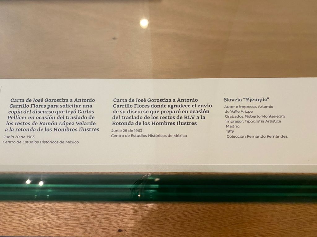 Amablemente, ella me ha enviado unas imágenes del escaparate donde se exhibe el ejemplar junto a un par cartas de José Gorostiza. La exposición se inauguró el pasado 19 de junio, día del centenario luctuoso de López Velarde, en el Museo de Guadalupe, en Zacatecas, y estará abierta hasta abril de 2022. Con mi agradecimiento explícito a Violeta Tavizón, reproduzco con mucho gusto esas imágenes, para compartirlas con quienes siguen este blog.