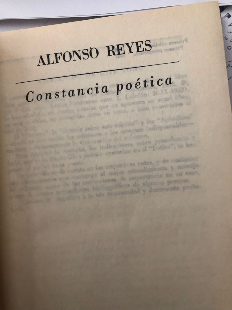 Entendí que una vez escrito y echado a rodar por el mundo, el poema es en cierto modo una especie de hecho sin tiempo, digamos que ahistórico, cosa que me animó a retomar la idea de escribir este pequeño ensayo. Tampoco por mucho tiempo: casi de inmediato pensé, como es evidente, que el asunto, si es que hay algo que decir, forzosamente debe de haber sido ya atendido por los innumerables conocedores de la obra reyesiana. Como defiende el propio Garciadiego, don Alfonso tiene más estudiosos que lectores, y yo, que formo parte de los segundos, debo moderar mis entusiastas sospechas de descubrimientos literarios, por humildes que éstos sean, y mostrar respeto por quienes sí saben.