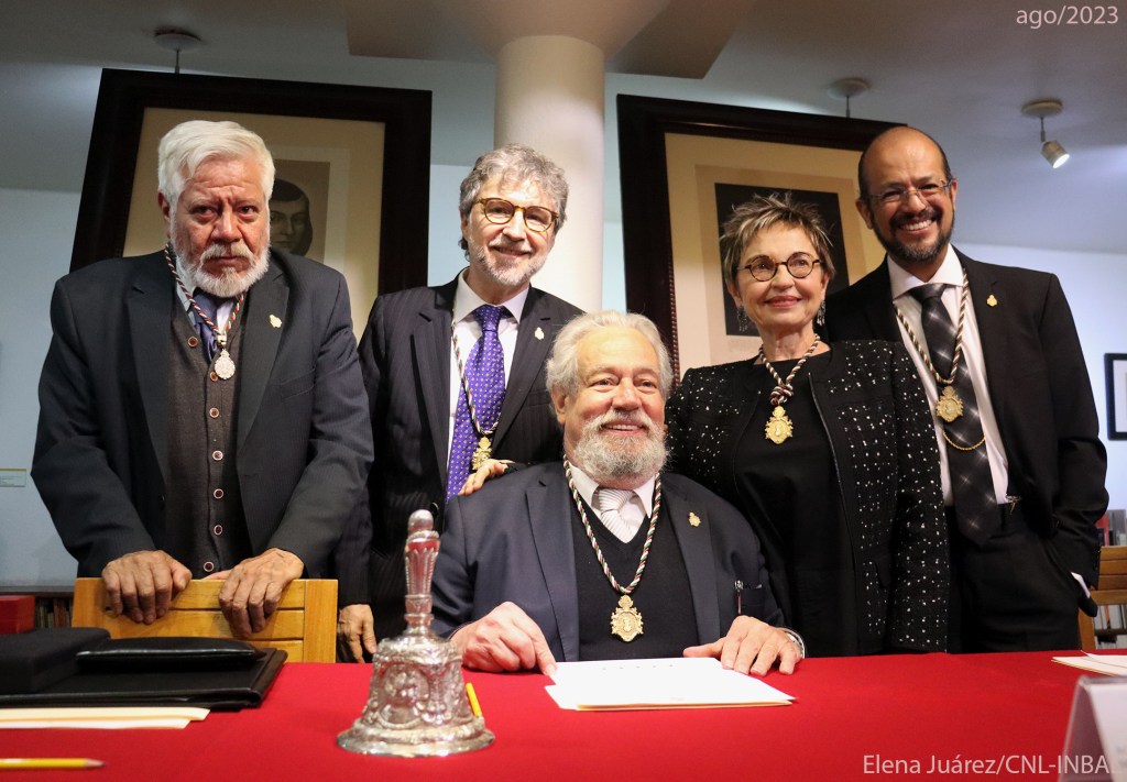 En primer plano, los académicos numerarios Jaime Labastida, Carlos Prieto, Felipe Garrido, Patrick Johansson y Vicente Quirarte (fuera de cuadro). Más atrás, Fernando Serrano Migallón, José Luis Díaz Gómez, Jorge Ruiz Dueñas, Jesús Silva-Herzog Márquez, Liliana Weinberg, Silvia Molina y Fernando Nava López.