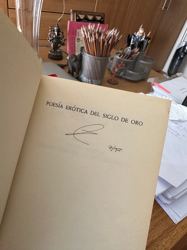 El soneto está en un libro que me regaló David Huerta, Poesía erótica del Siglo de Oro de Pierre Alzieu, Robert Jammes e Yvan Lissorgues (Crítica, Barcelona, 1984). La prueba de su eficacia me la brindó cierta ocasión en 2016, cuando la Escuela de Escritores de Coyoacán acababa de fracturarse y unos amigos y yo decidimos proseguir el proyecto educativo en una casa en la colonia Narvarte que tenía delante dos imponentes palmeras.