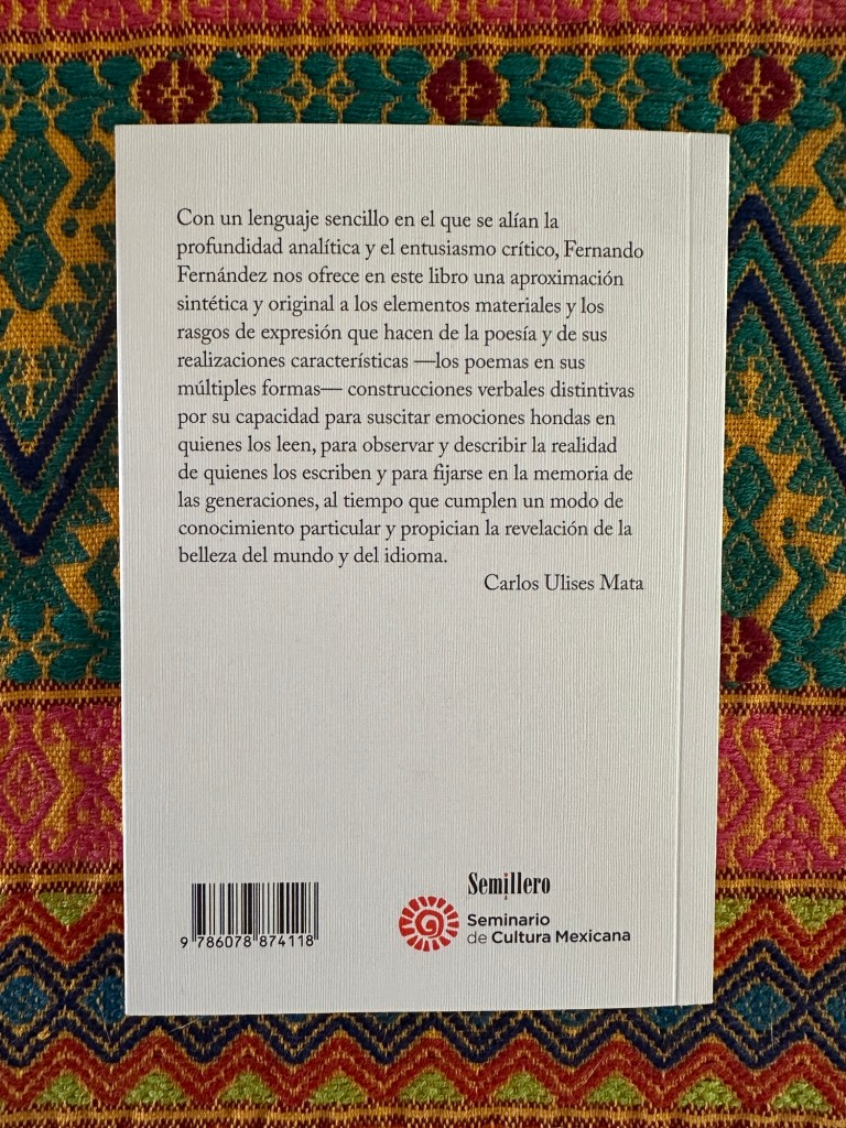 Es tan ligero que apenas pesa en la mano: las 60 páginas de La poesía, mi flamante nuevo libro, contrastan con las más de 400 del inmediatamente anterior, Mar en turco (ensayos sobre Gerardo Deniz). El librito acaba de aparecer y muy pronto podrá descargarse gratuitamente; es el resultado de la invitación hecha por el Seminario de Cultura Mexicana a entregar un texto de divulgación que sirva a los propósitos educativos que animan a esa institución desde hace más de 80 años. El pasado 23 de enero aproveché la primera lectura estatutaria a mi cargo, para leerlo a mis colegas de la Academia Mexicana de la Lengua. Gracias al Seminario y a quienes laboran en él; asimismo, gracias a Alejandro Magallanes, por la preciosa cubierta, y a Carlos Ulises Mata por el texto que aparece en la contraportada.