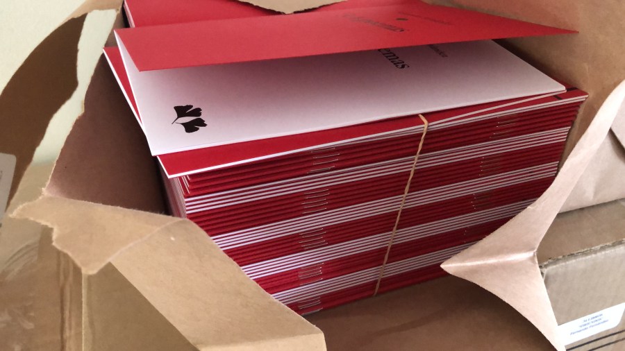 Esta plaquette, llamada 3, 4 poemas, es la primera de la serie Biloba de Cataria Ediciones. Como en el caso de los dos libros del catálogo de la joven editorial (Oriundos y Las hojas), el diseño es de Lola García Zapico. El logotipo de la serie está inspirado en el par de hojas de Ginkgo…